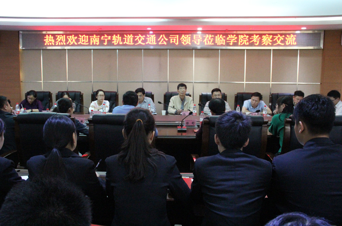 陈彬向庞志刚一行介绍了学院的整体规划、新校区建设、综合实力、办学特色与优势和招生就业等情况。他说,近年来学院不断深化校企合作,为各大地铁与铁路公司输送了很多优秀人才。同时,衷心希望南宁轨道交通公司一如既往对我院发展给予大力支持,双方相互扶持,共谋发展。