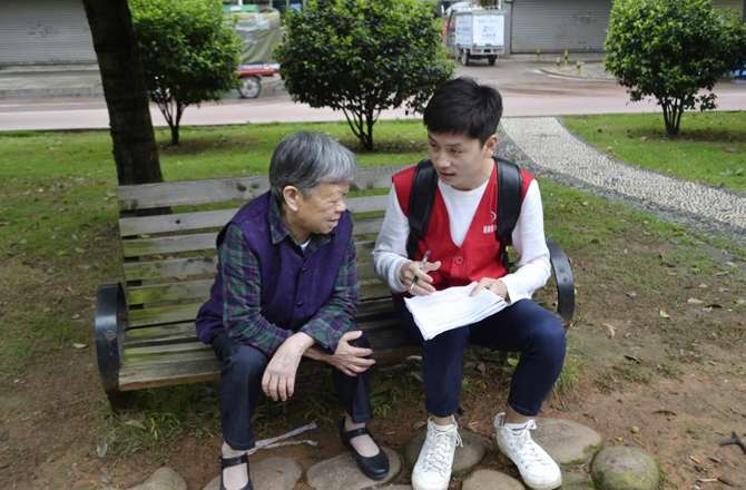 志愿者们分成3组身着红马甲,穿梭于各大街道、社区、公园开展问卷调查。志愿者们在问卷调查之余同老人们聊天,更为深入的了解老人们幸福感来源,老人们被志愿者们阳光热情的笑容所感染,都乐意配合工作。本次活动持续6小时,志愿者们成功的完成调查工作,与株洲市同心社会工作服务中心的老师唐勇完成交接工作。