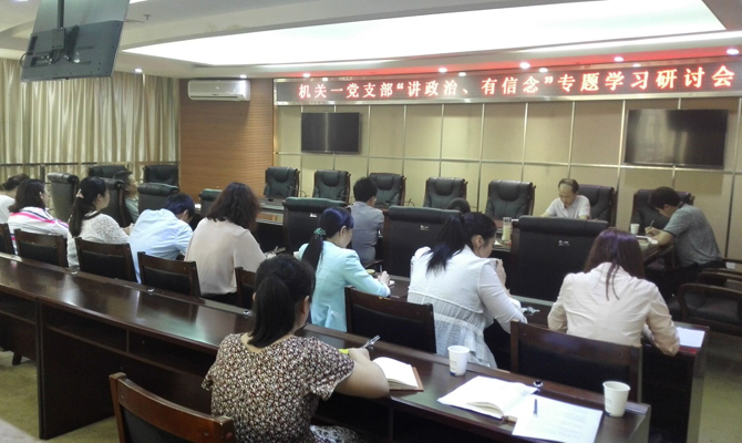 2016年5月31日下午,机关一党支部党员在行政楼311会议室举办以“讲政治、有信念”为主题的学习研讨,会议由机关一党支部书记孙晓阳主持。会前,每位党员都高度重视,认真准备发言材料,会中每位党员结合自身的实际工作,从“讲政治、有信念”方面作了发言。