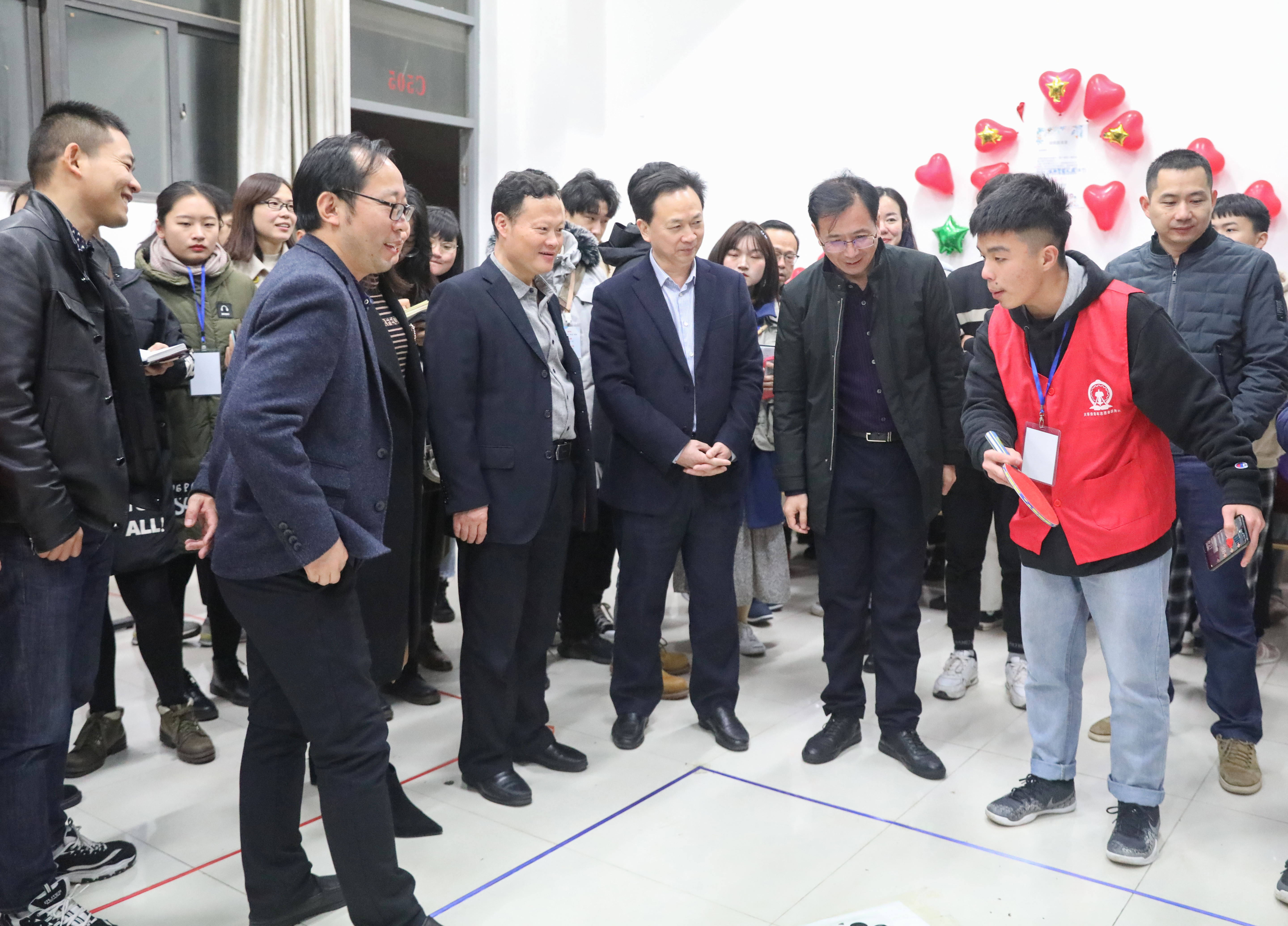 在活动现场,刘剑飞、戴联华等院领导饶有兴致地听取了游戏负责人讲解的游戏规则,观看了“凌波微步”“踩气球”等游戏项目,现场一片欢声笑语,气氛十分融洽。刘剑飞、戴联华为学生们送上新年祝福,希望大家在新的一年里学习进步,学有所成。