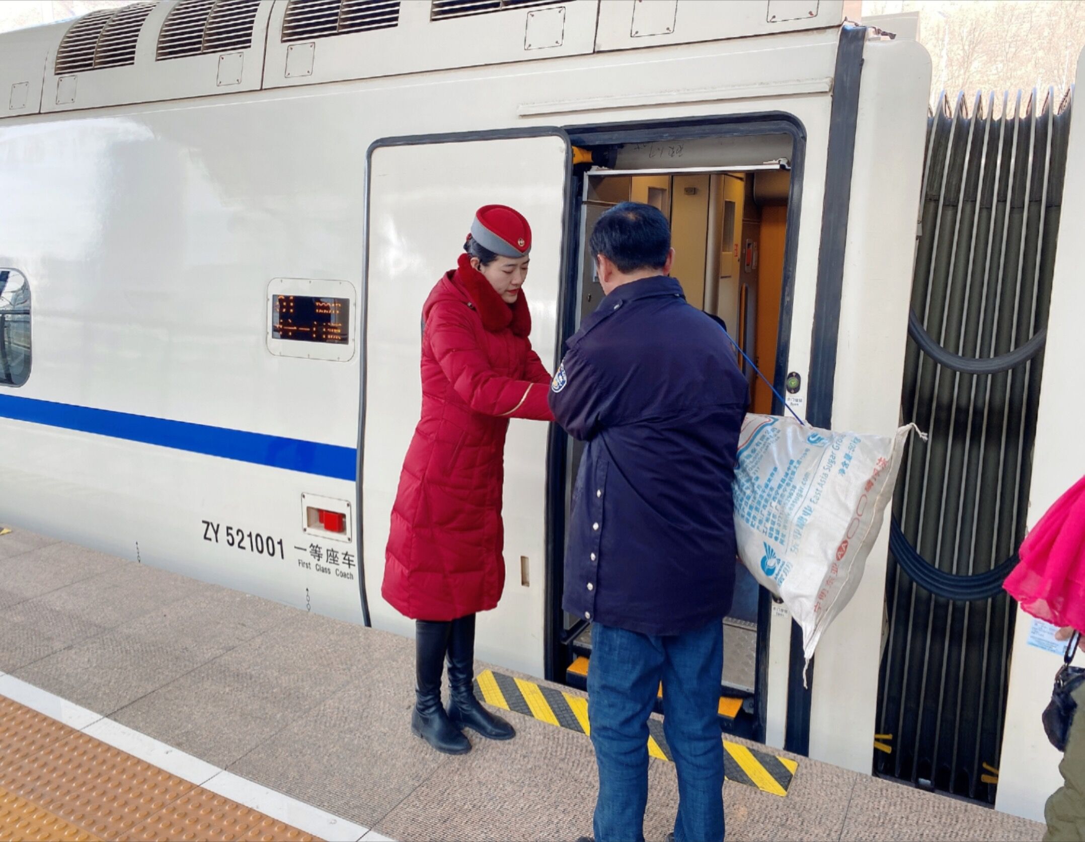 傅小哥在站台为乘客检票