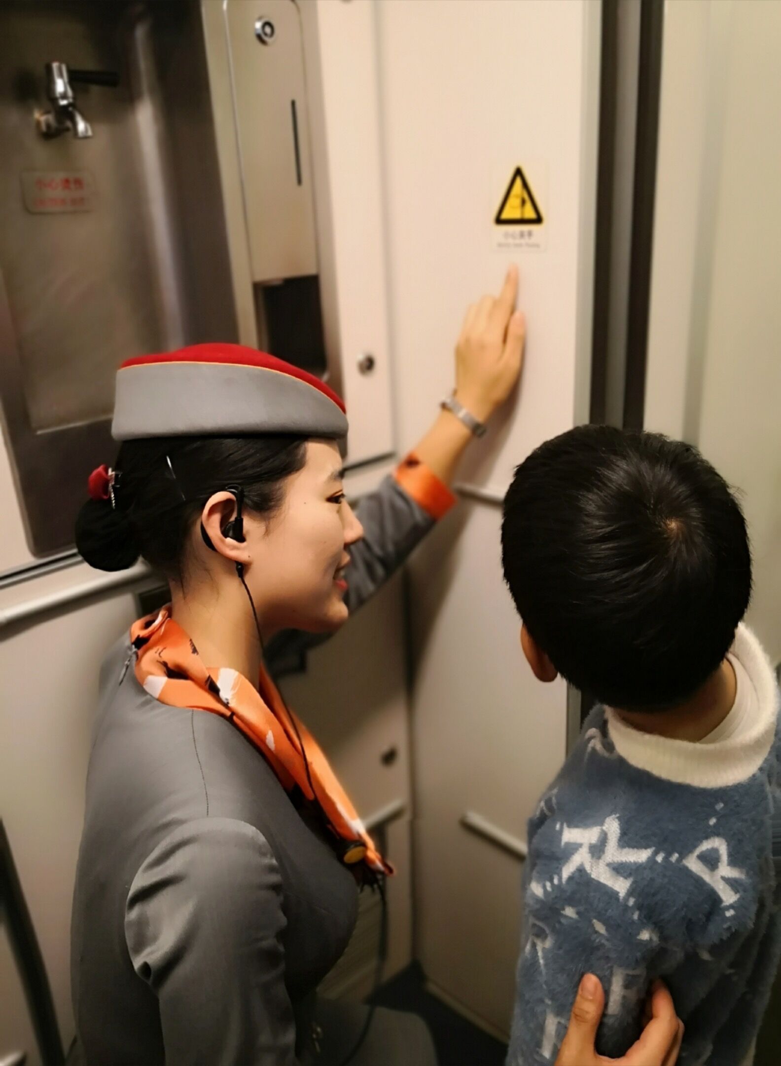 学院毕业生傅小哥在值乘中为旅客解说安全事项