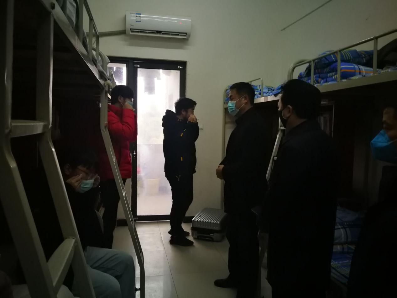 学院党委书记刘剑飞,党委委员、副院长陈忠林,党委委员、工会主席邵建平看望因春运实习退乘而无法回家的湖北籍学生