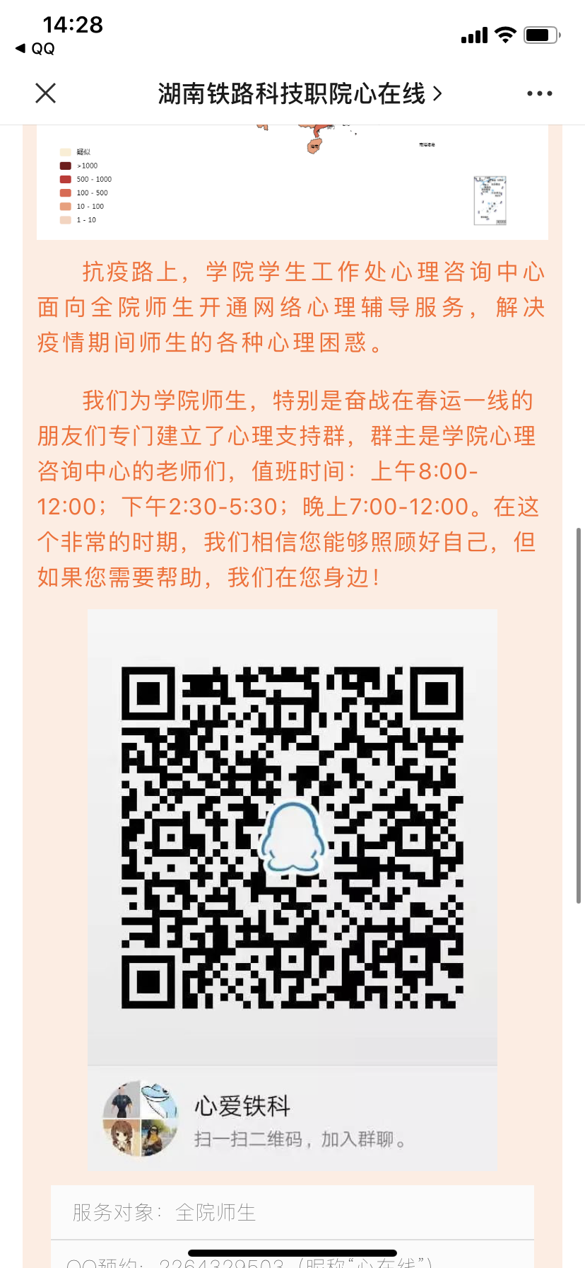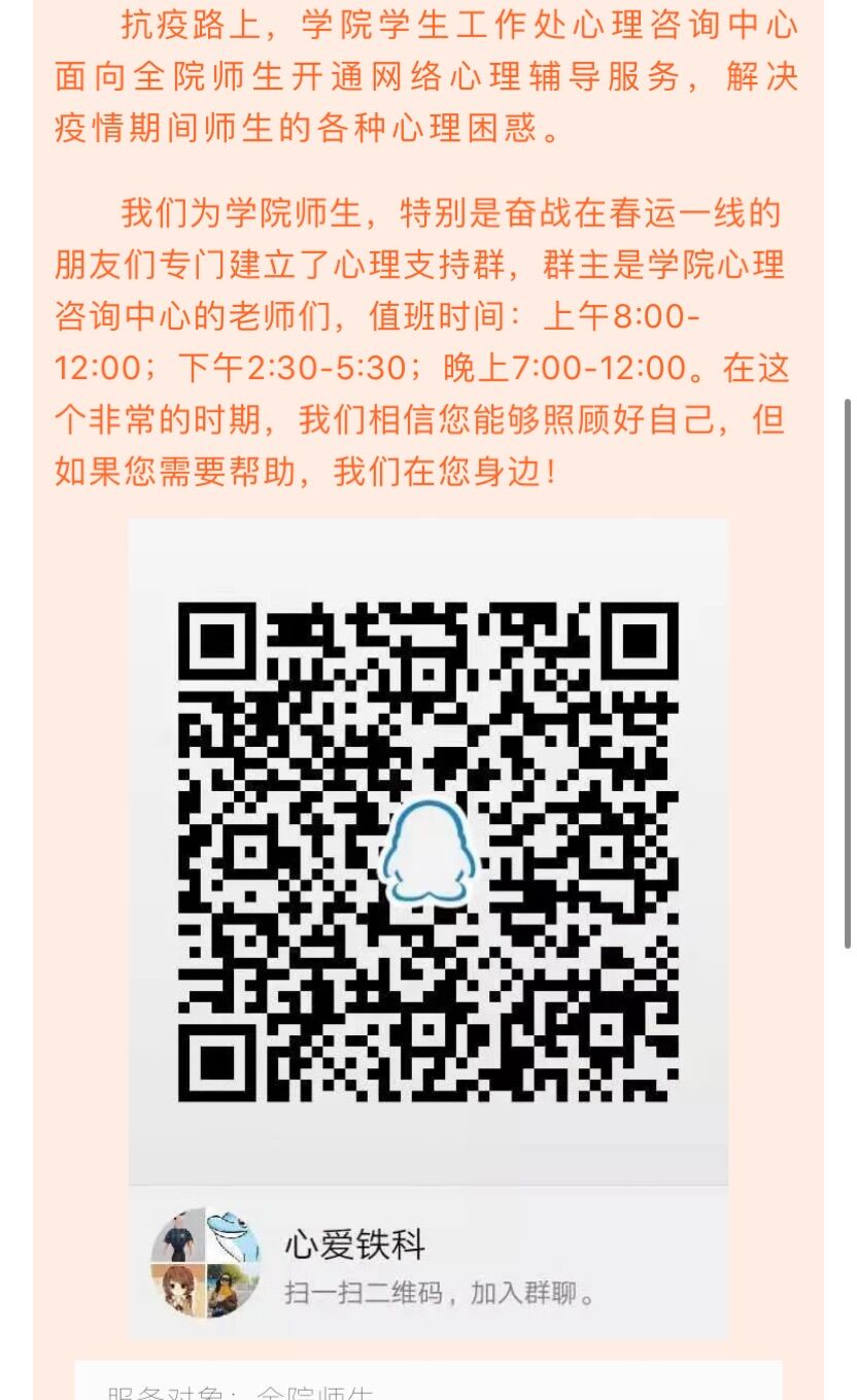 学院学生工作处心理咨询中心建立“心爱铁科”心理支持群