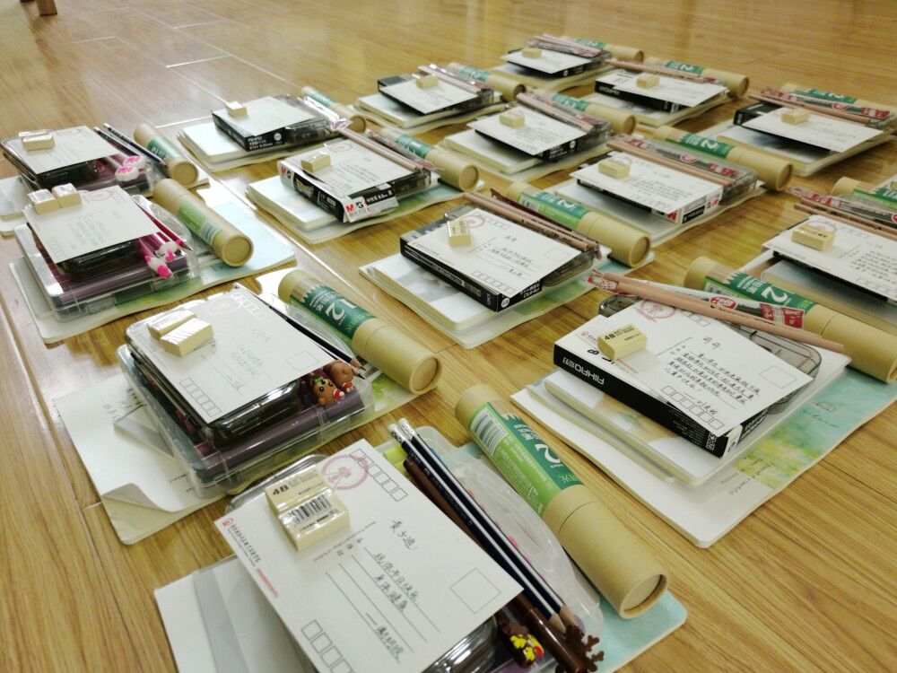 为了给孩子们送去一份他们真正需要的礼物,活动开始前株洲市大同社会工作服务中心工作人员向志愿者们交代了孩子们的基本情况以及注意事项,每一位小朋友都分配了相应的志愿者“送货上门”。铅笔、水彩笔,中性笔、橡皮檫、圆规套装,日记本……除去日常学习用具,让小朋友们眼睛一亮的还有一件来自学校的“特别”礼物。这正是一张张满载着志愿者们对小朋友们的祝福,并印有学校校内美景的明信片。小朋友们收到礼物与祝福后表现得非常开心,他们录制了一段视频表达对仙庾镇政府、团委,以及志愿者们的感谢。