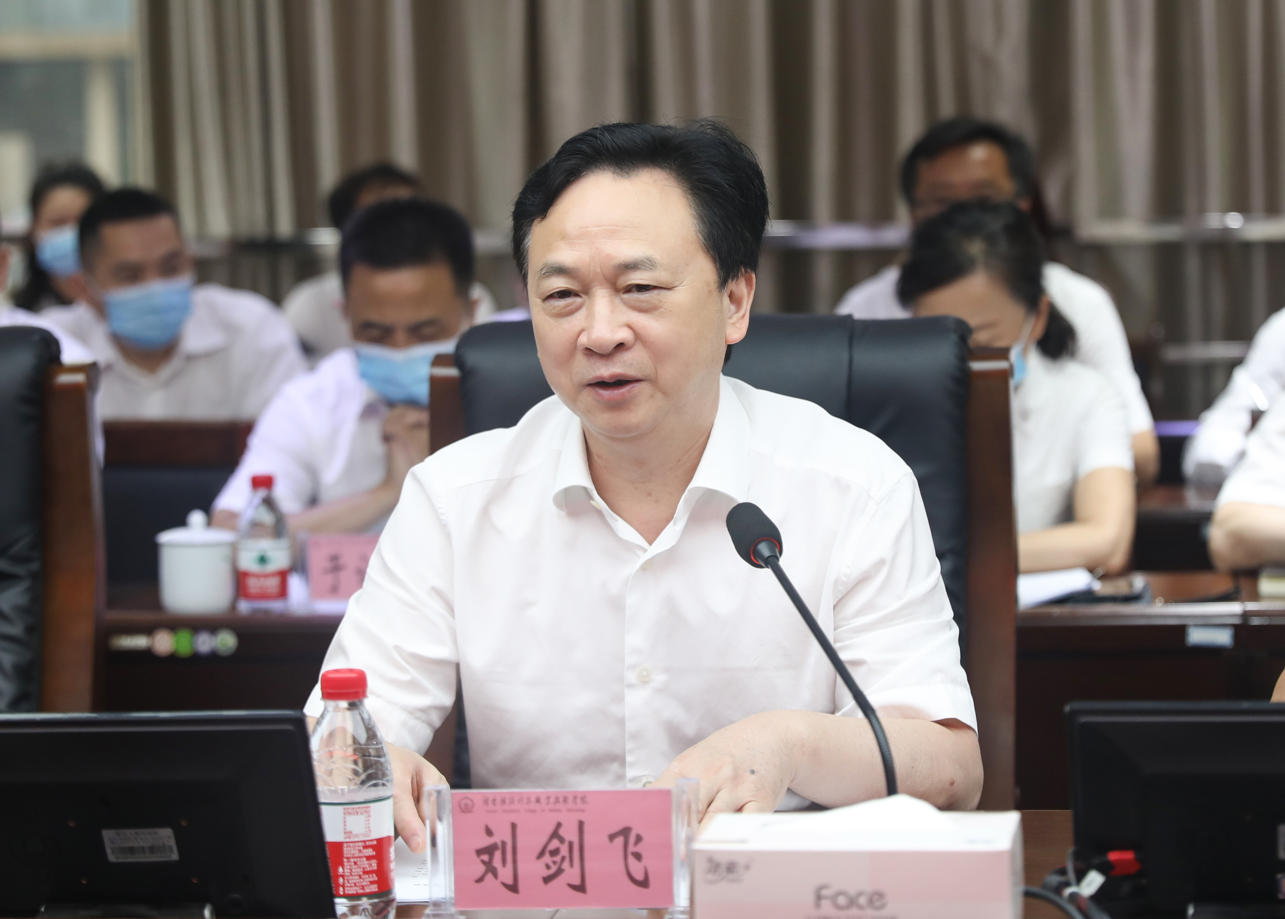 刘剑飞代表学校党委作表态发言。他说,学校将以此次专家督导为契机,虚心听取专家建议,认真总结工作经验,强优势、补短板、抓落实,不断提高学校依法办学、依法治校的能力和水平,为建设中国特色高水平高职学校不懈努力!