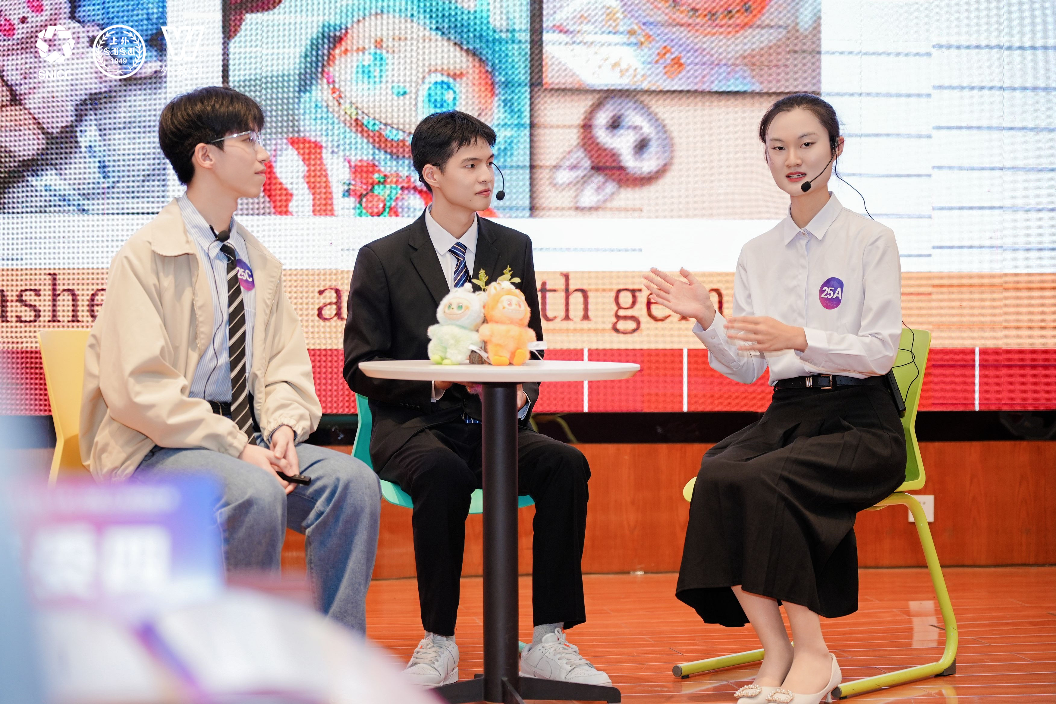 在跨文化能力大赛赛道中,由我校郭紫聃、曾峥、王丹老师指导,江浩楠、寿浛羽、杨浩林同学参赛的作品《Labubu:A Global Cross-cultural Icon》脱颖而出,该作品以风靡全球的潮玩形象“Labubu”为切入点,深入浅出地探讨了全球化背景下文化符号的传播、融合与青年身份认同,其流利的英语表达、创新的视角和扎实的理论功底,赢得了评委的高度认可。